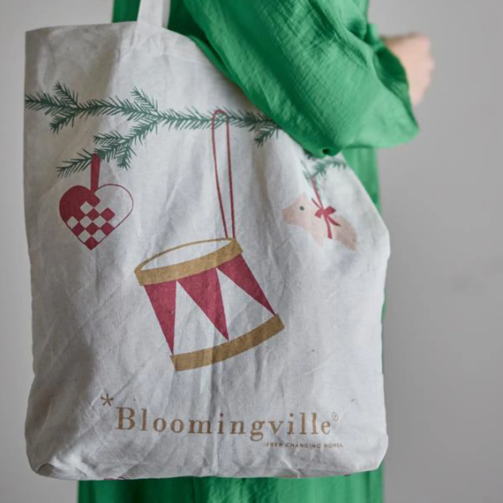 La borsa Yule Tote Bag di Bloomingville è realizzata in cotone e decorata con un grazioso motivo natalizio su entrambi i lati. Questa graziosa borsa a tracolla è perfetta per l'uso quotidiano, sia per fare shopping che per uscire.