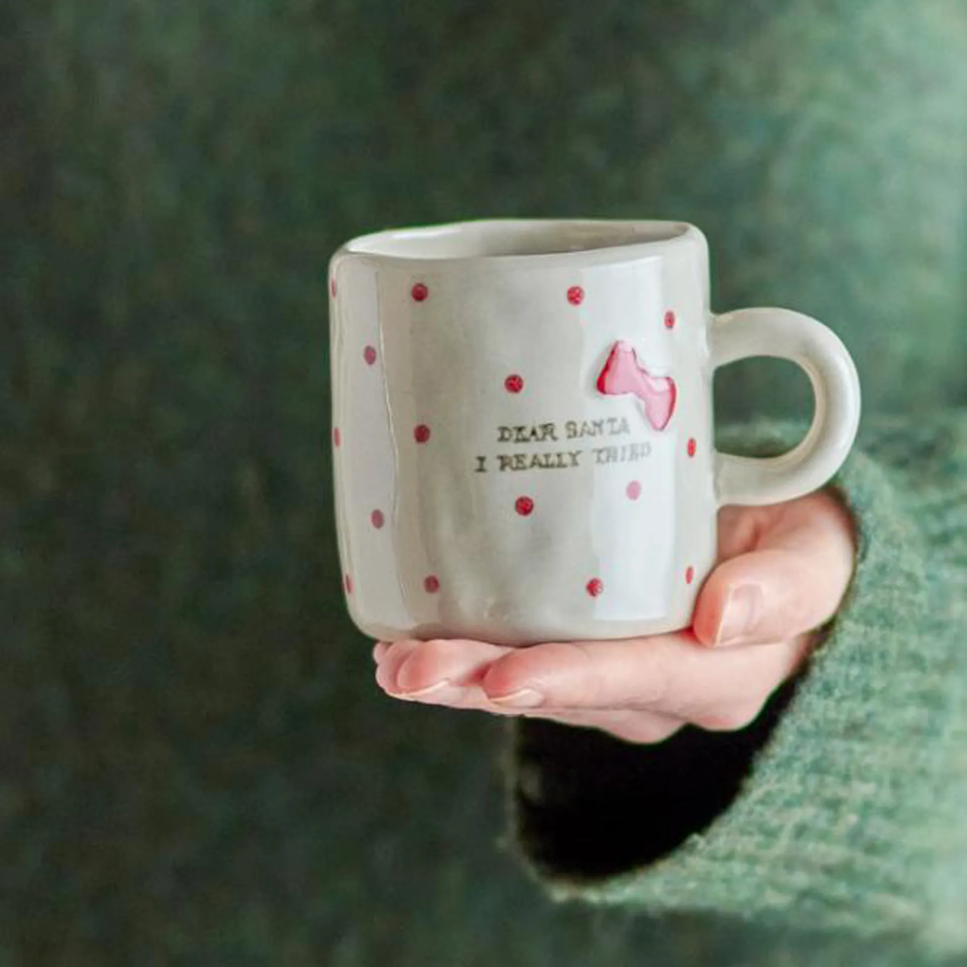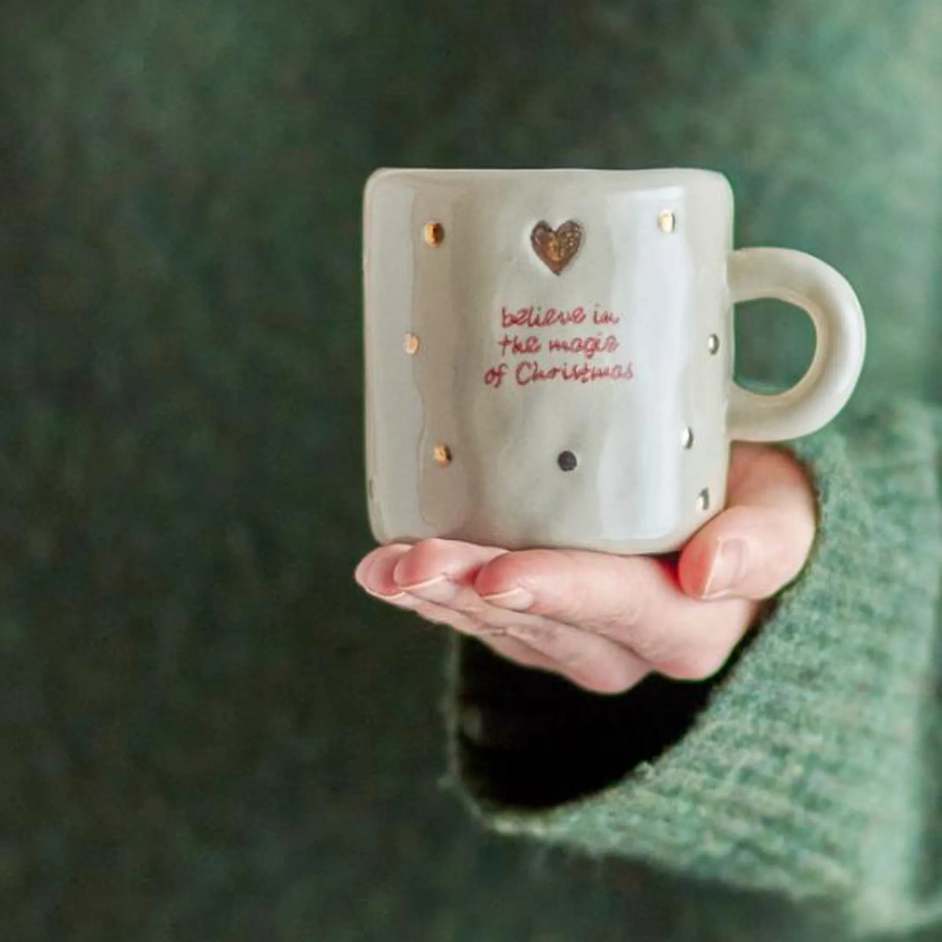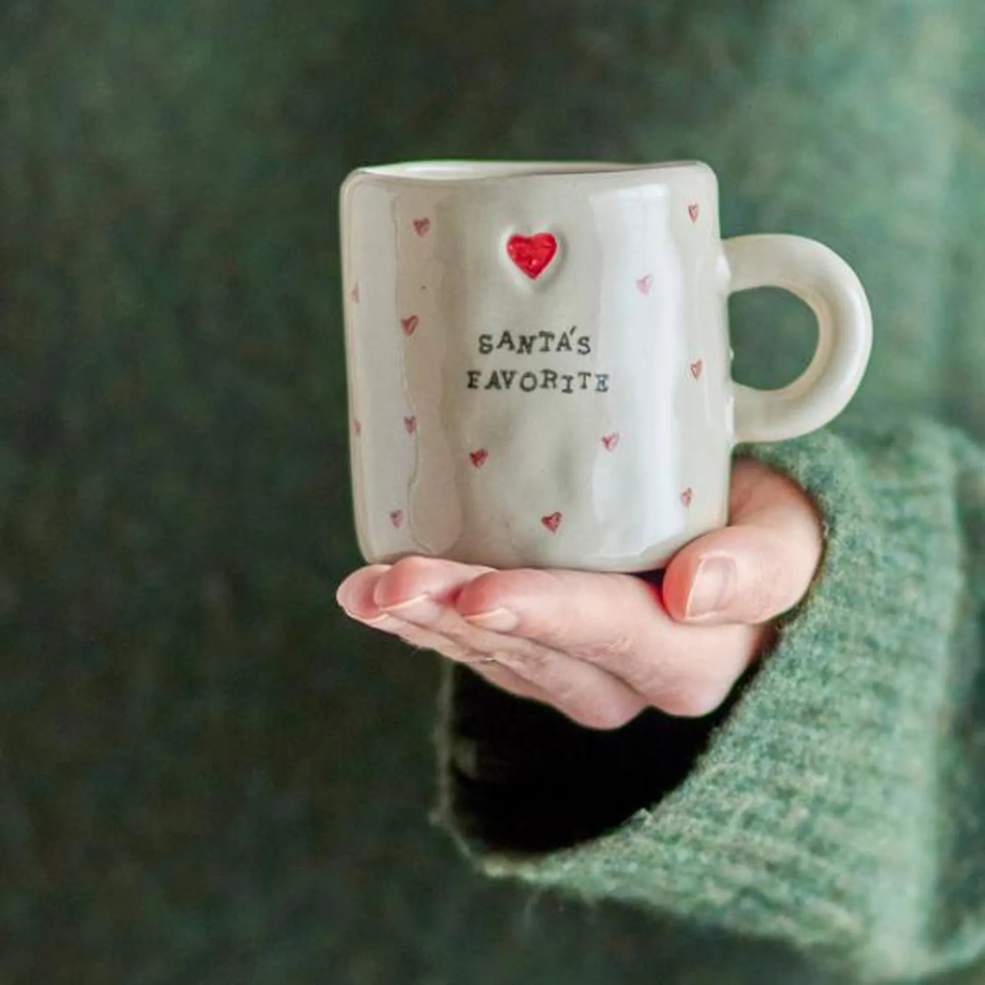 La Christy Cup di Bloomingville è un set di quattro tazze in gres con superficie dipinta a mano con elementi natalizi nei toni del rosso e dell'oro. Possono verificarsi variazioni nel motivo e nell'intensità del colore, rendendo ogni pezzo unico.