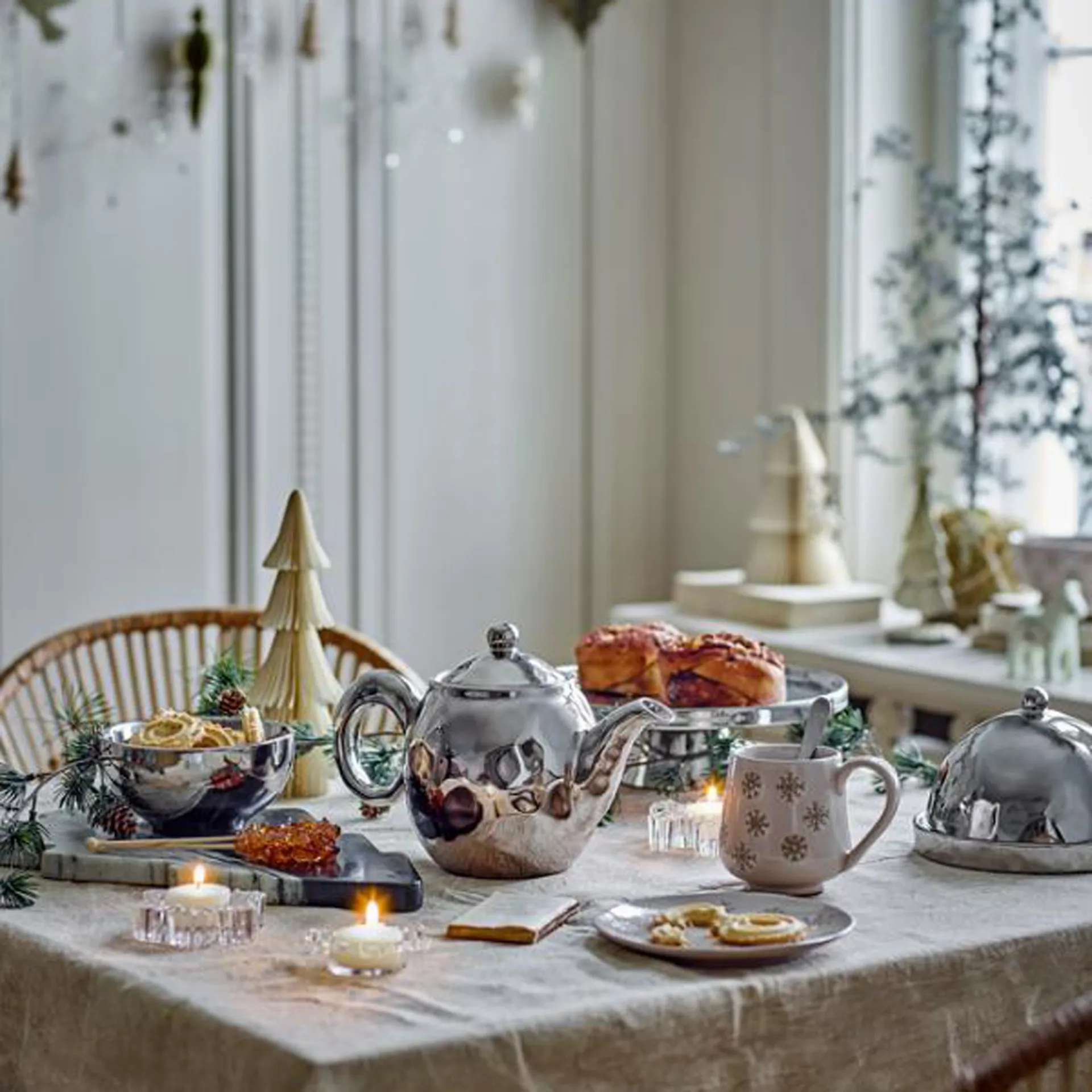 Il vassoio Shine Cake Tray di Bloomingville è un'alzata per torte in gres con smalto argentato e superficie lucida, adatta per servire.