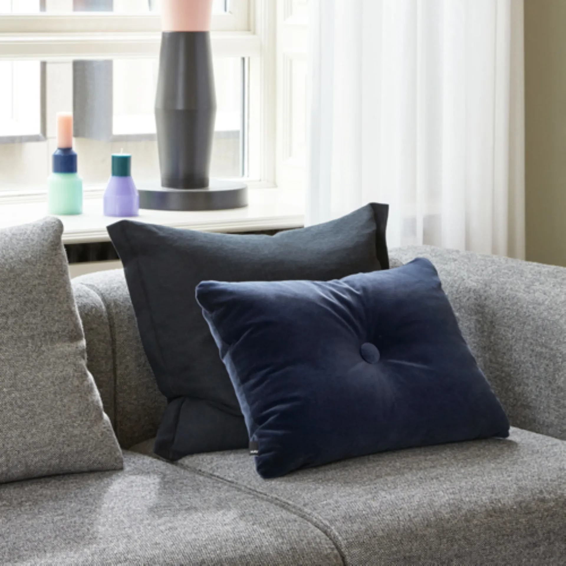 Caratterizzato dai bottoni rivestiti al centro del cuscino, il Dot Cushion è diventato un classico del design HAY. Disponibile in una varietà di tessuti e texture, il cuscino si presenta in un'ampia gamma di colori versatili, che vanno dalle tonalità neutre ai toni più vivaci.